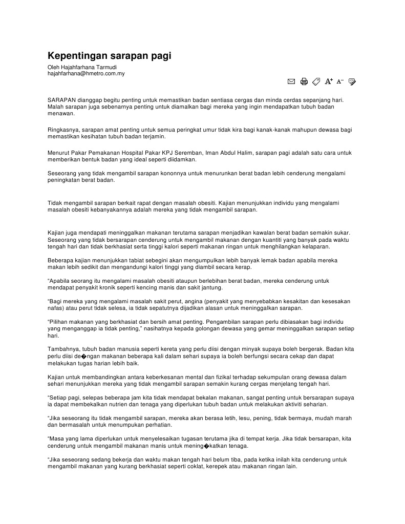 Dia suka sambung tidur dalam kereta daripada makan kata Halimah ketika diaju soalan kenapa tidak menyediakan. CONTOH KARANGAN SPM KEPENTINGAN BERSARAPAN PAGI Mimi tidak suka sarapan pagi. 1Apa yang dimaksud dengan sarapan.